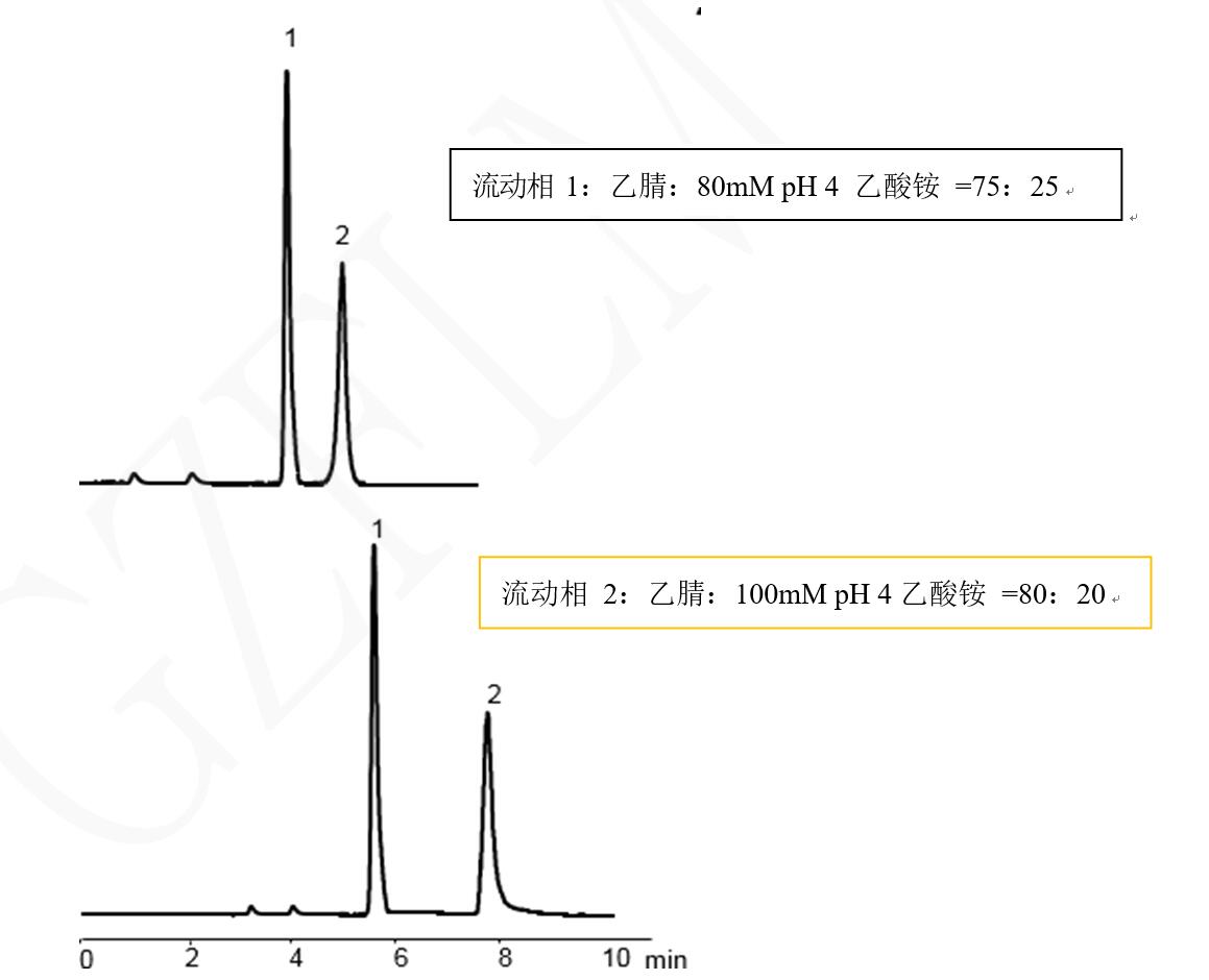 注:長柱可推薦用 Comixsil ACRP 5u 250*4.6mm 色譜柱,流動相配置:700mL 乙腈+200mM 200mL 乙酸銨+100mL 水。