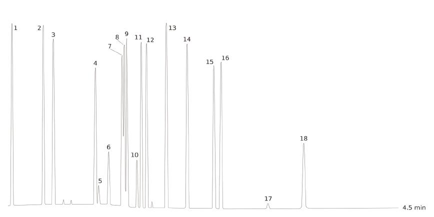 升溫程序:50℃ (0.1min), 40℃ /min, 250℃ 樣品:用環(huán)己烷稀釋濃度為 1%