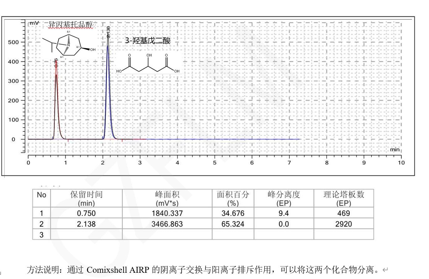 HPLC液相柱Comixshell AIRP 混合模式分離 3-羥基戊二酸與異丙基托品醇