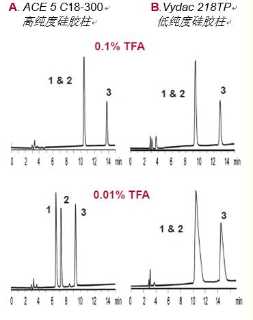但采用高純度硅膠柱時,可加入低濃度TFA(圖17A——0.01%