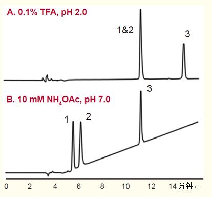 pH值對多肽保留行為的影響。不論采用TFA和磷酸,還是其它離子對試劑,用于多肽分離的反相流動相通常適應的pH值較低。